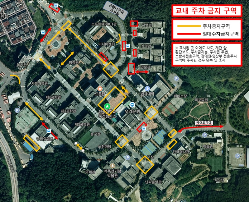 단국대학교 교내 주차 질서 확립을 위하여 불법 주·정차 단속 시행을 아래와 같이 안내합니다.